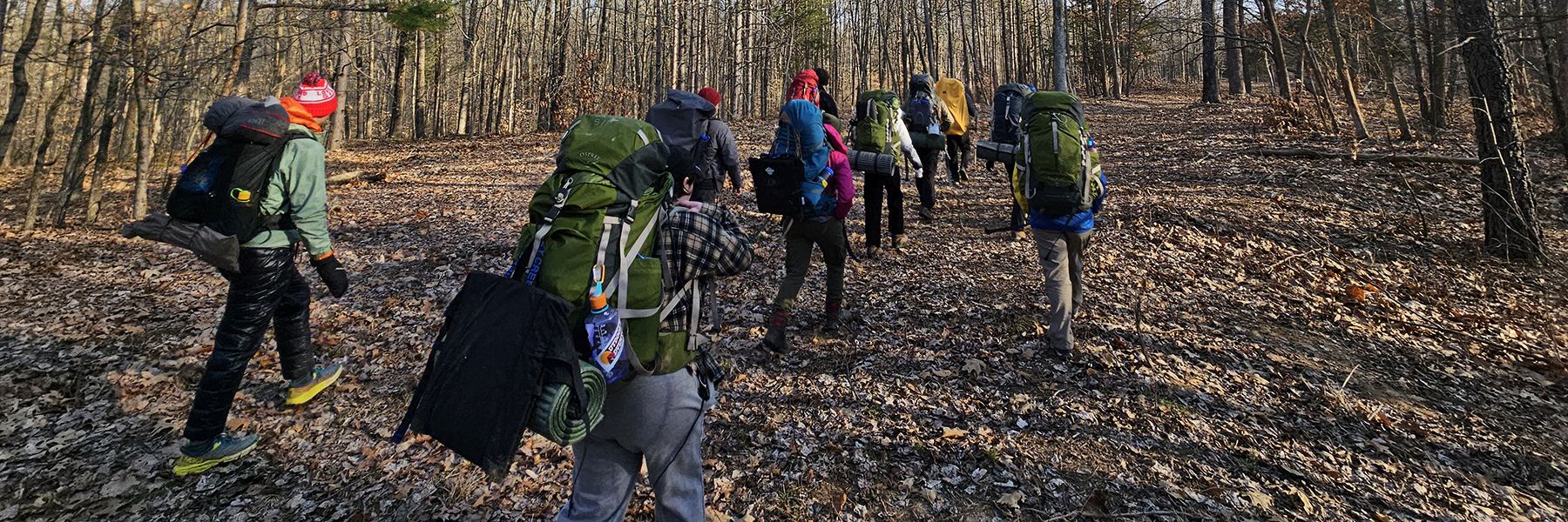 This eight-week course introduces the foundations of outdoor adventure leadership, including an introduction to the core competencies of outdoor living skills, education, leadership, risk management, environmental integration, and planning & logistics. The course emphasizes backcountry leadership and judgement with a broad overview of the relevant theories and practices of the outdoor adventure industry. Teaching processes include lecture, discussion, group projects, peer teaching experiences, practical skills sessions, and expeditionary learning. This course is highly experiential throughout. You will be responsible for carrying a backpack of personal and group gear (30 lbs or more) on uneven terrain and may be exposed to inclement weather. This course meets in a classroom 2 evenings per week in addition to 2 mandatory weekend field experiences in Hoosier National Forest. Each field experience departs on Friday and returns on Sunday. Students will be camping for 2 nights per experience. Essential gear, food and transportation are provided.